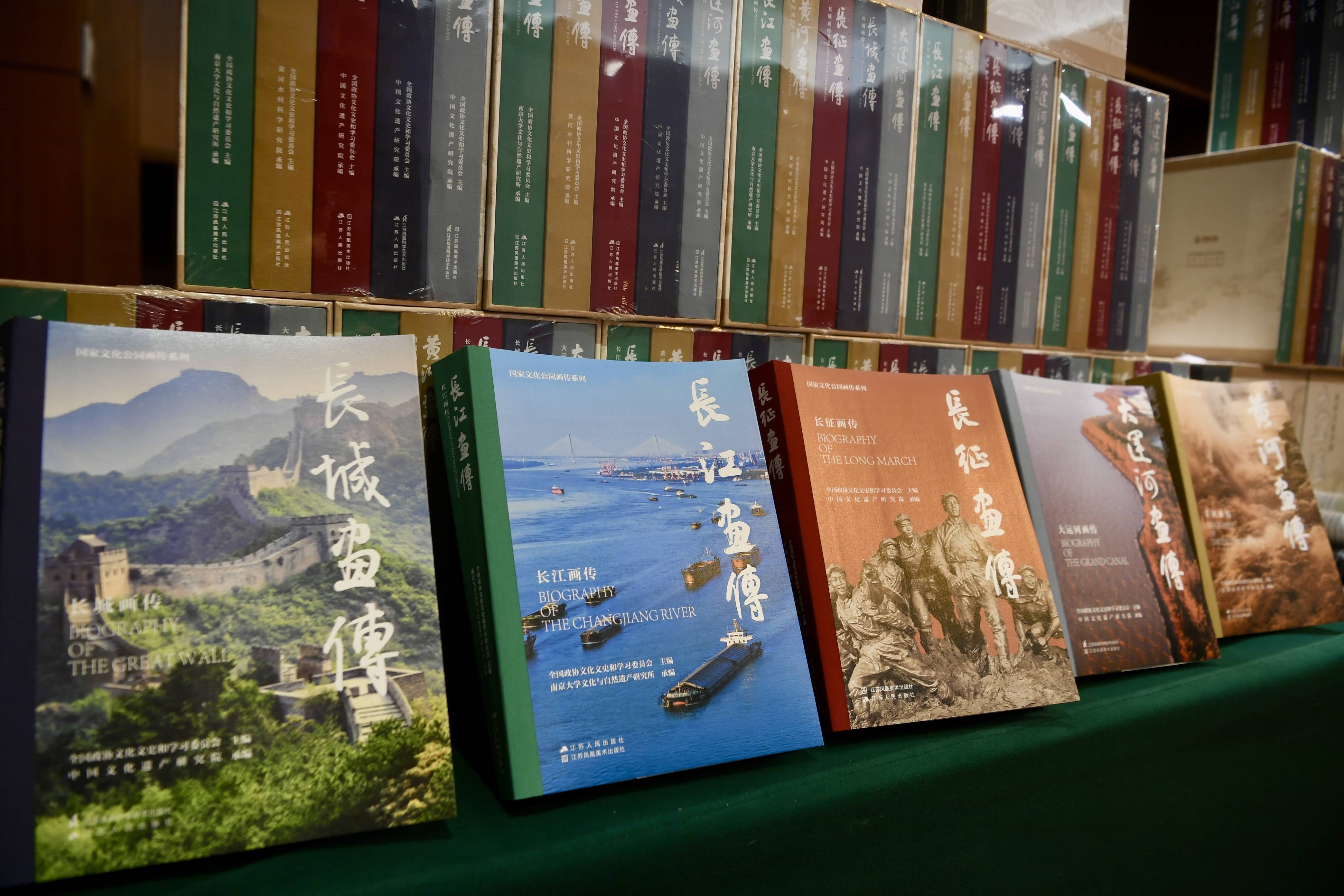 出版座谈会上展示的“国家文化公园画传系列”丛书。(出版方供图)作为“国家文化公园画传系列”的最新作品,《长江画传》与此前出版的《大运河画传》《长城画传》《长征画传》《黄河画传》四本画传共同构成了五卷本丛书。“国家文化公园画传系列”由全国政协文化文史和学习委员会主编,前后历时五年完成出版。画传系列先后入选国家社科基金特别委托项目、中宣部主题出版重点出版物、“十四五”时期国家重点出版物出版规划项目。